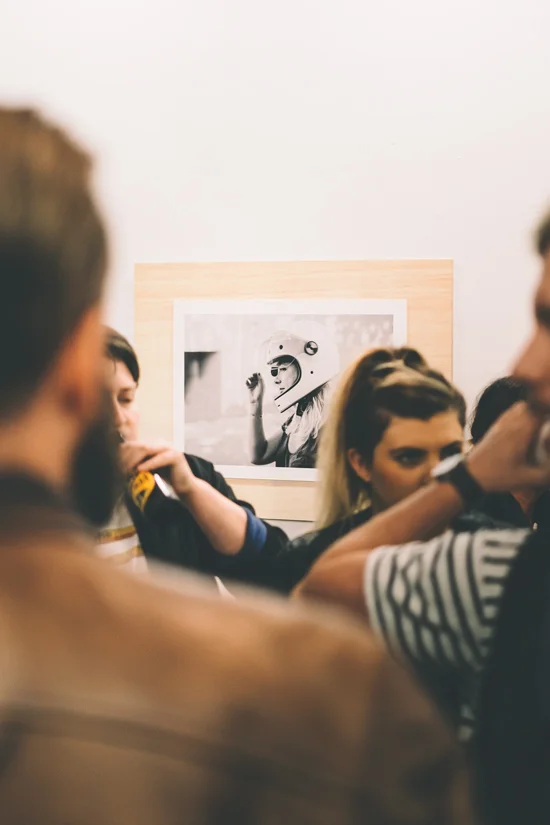 The place was packed, and was really nice to see some images made for the interwebs get the attention they deserved, printed and hung on the white walls of M2 Gallery in Surry Hills. A little win for me was seeing more than half the images on the walls have been produced for (and featured on) IVV since the launch in December 2014. Better yet was the fact that most of that content was of women on motorcycles and all were chosen on the merit of the image rather than for the gratuitous-woman-shot. In the gallery, it looked really normal that women ride motorcycles... while I know that's not news to IVV readers, before IVV started, there may not have been any photographers in this exhibition who are women and shot women as they are.