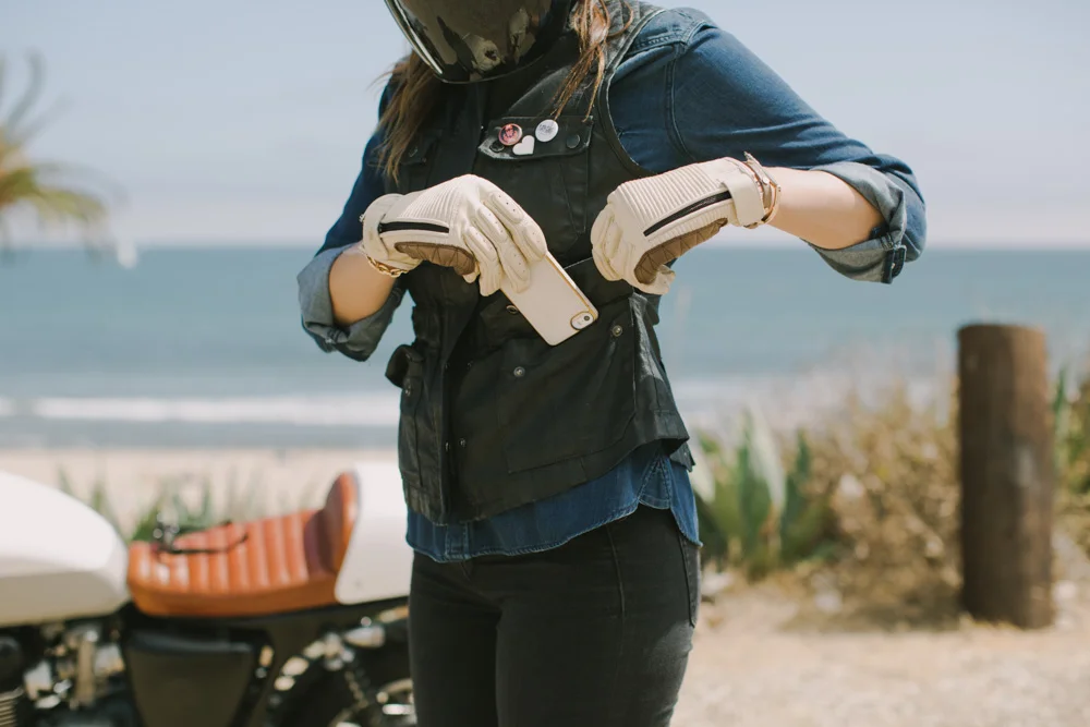 Maybe I've been living in a bubble (okay, highly likely I've been living in a bubble), but I had never thought to look for a leather vest for riding. The association with leather vests and motorcycles, in my mind, is not really high on the fashion stakes. They're usually badass, patched with a hoodie under and sometimes a fringe to boot (nothing against fringes but you get where I'm going with this). When I saw the way Lindsay wears hers, it changed my perception of this bit of kit. Pockets everywhere, flattering adjustable waistline, great to wear in the warmer months, even with a lighter armoured jacket over the top and works off the bike too.